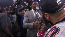 Patriots contract kissing disease after hot group make out session with trophy.